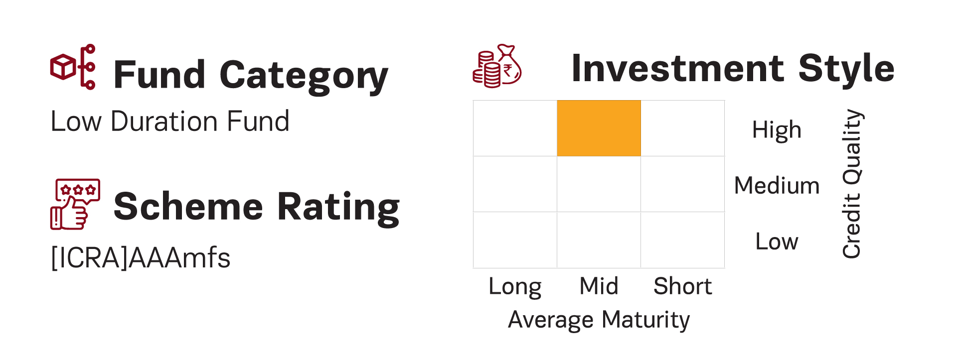 | An open ended low duration debt scheme investing in instruments such that Macaulay duration of the portfolio is between 6 months and 12 months. A relatively high interest rate risk and moderate credit risk. |
