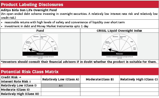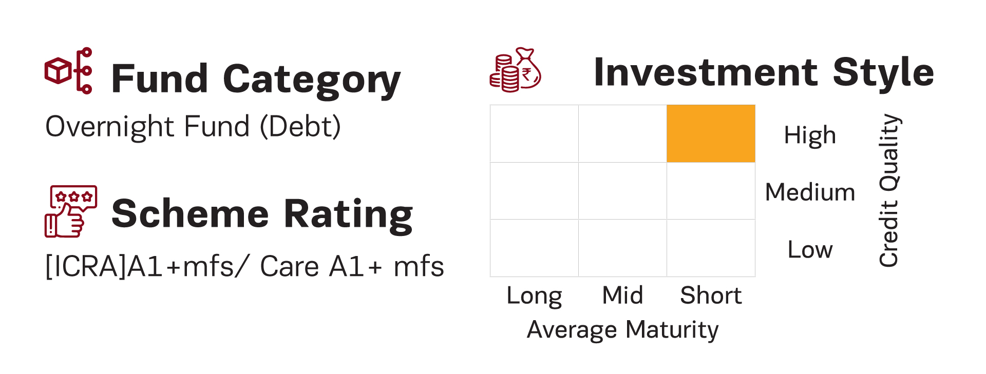| An open ended debt scheme investing in overnight securities. A relatively low interest rate risk and relatively low credit risk. |