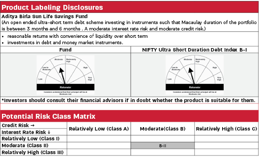 | An open ended ultra-short term debt scheme investing in instruments such that Macaulay duration of the portfolio is between 3 months and 6 months. A moderate interest rate risk and moderate credit risk. |