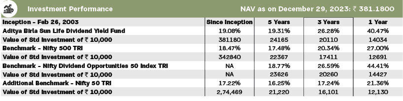 This page is a part of the December 2023 Factsheet of Aditya Birla Sun Life Mutual Fund. Click on http://empower.abslmf.com/ for the digital factsheet.