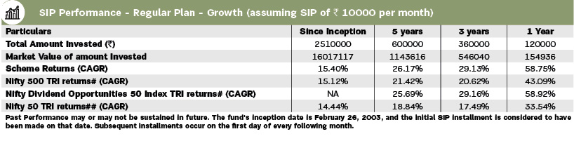 | An open ended equity scheme predominantly investing in Dividend yielding stocks. |