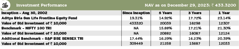 This page is a part of the December 2023 Factsheet of Aditya Birla Sun Life Mutual Fund. Click on http://empower.abslmf.com/ for the digital factsheet.