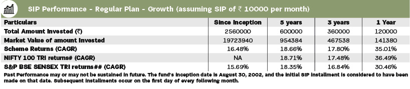 For SIP calculations above, the data assumes the investment of ₹ 10000/- on 1st day of every month or the subsequent working
