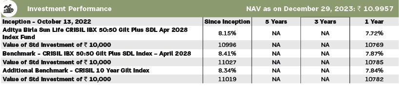 Aditya Birla Sun Life CRISIL IBX 50:50 Gilt Plus SDL Apr 2028 Index Fund |