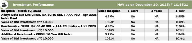 Aditya Birla Sun Life CRISIL IBX 60:40 SDL + AAA PSU - Apr 2025 Index Fund |
