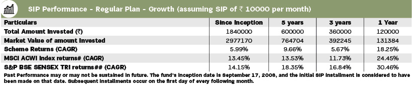 For SIP calculations above, the data assumes the investment of ₹ 10000/- on 1st day of every month or the subsequent working