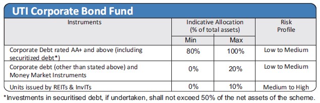 | Investment Objective The investment objective of the scheme is to generate optimal returns by investing predominantly in AA+ and above rated corporate bonds. However, there can be no assurance that the investment objective of the scheme will be realized. The Scheme does not guarantee / indicate any returns. |
