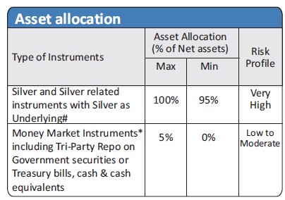 | Investment Objective The Investment Objective of the Scheme is to generate returns that are in line with the performance of physical silver in domestic prices, subject to tracking error. However, there is no guarantee or assurance that the investment objective of the scheme will be achieved. |