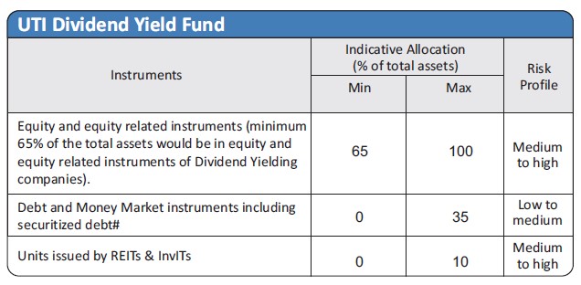 | Investment Objective The objective of the scheme is to generate long term capital appreciation and income by investing predominantly in IDCW yielding equity and equity related securities. However, there can be no assurance or guarantee that the investment objective of the scheme would be achieved. |