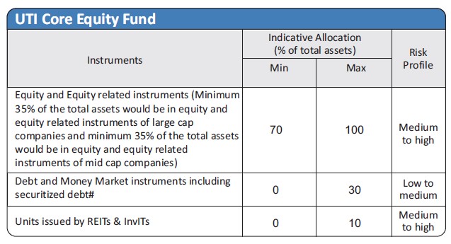 Past performance may or may not be sustained in future. Different plans shall have a different expense structure. The performance details provided herein are of regular plan (growth option). Returns greater than 1 year period are Compound Annual Growth Rate (CAGR). Inception of UTI Core Equity Fund: May 20, 2009. Date of allotment in the scheme/plan has been considered for inception date. The Scheme is currently managed by Mr. V. Srivatsa since May-2017. Period for which scheme's performance has been provided is computed basis last day of the month-end preceding the date of advertisement. In case, the start/end date of the concerned period is a non-business day, the NAV of the previous date is considered for computation of returns. Load is not taken into consideration for computation of performance.