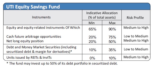 | Investment Objective The investment objective of the Scheme is to provide capital appreciation and income distribution to the investors using arbitrage opportunities, investment in equity / equity related instruments and debt / money market instruments. However, there is no assurance or guarantee that the investment objective of the Scheme would be achieved. |